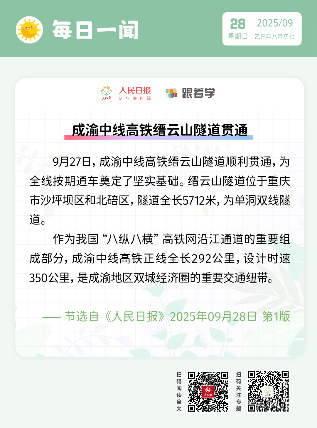 每日一闻丨成渝中线高铁缙云山隧道贯通